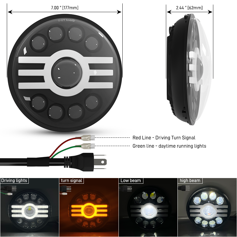 ✅ True Universal 7-inch Fitment: The industry-standard 7-inch (180mm) round design ensures direct compatibility with a vast range of vehicles, from motorcycles and UTVs to jeeps and trucks. It’s a direct replacement for standard sealed-beam units.