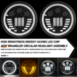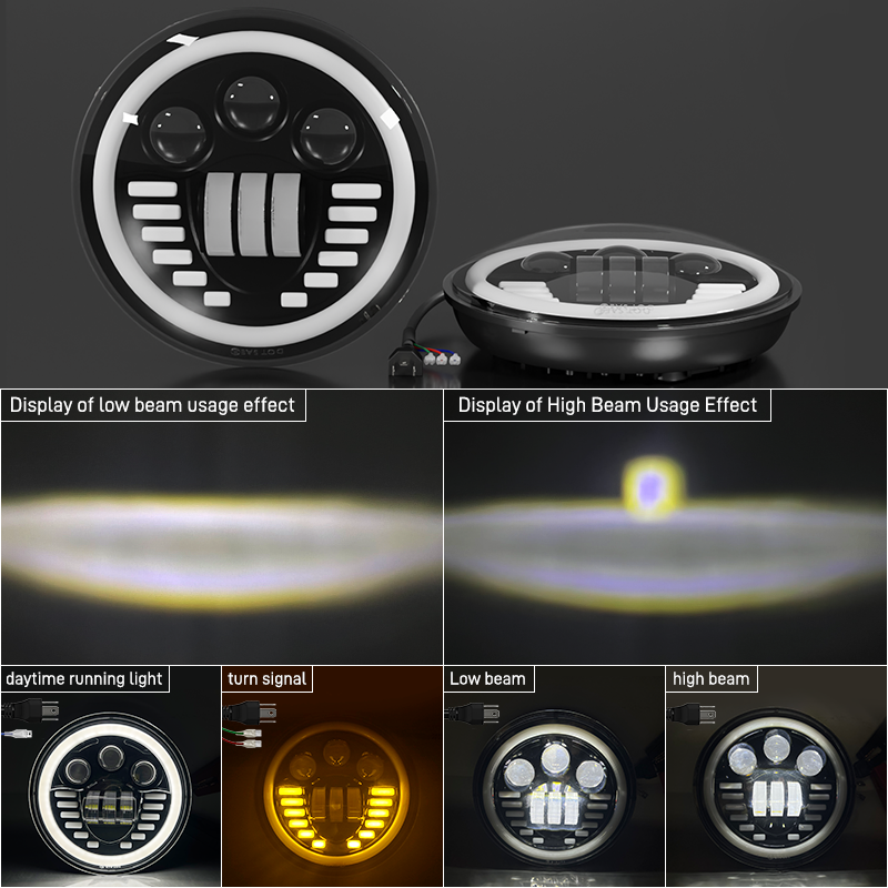 ✅ Dual LED Projector Headlight: At its core are two high-performance LED projectors housed within the single 7-inch unit. This creates a superior wide and far-reaching beam pattern with a sharp cutoff line, dramatically improving night visibility without blinding oncoming traffic.